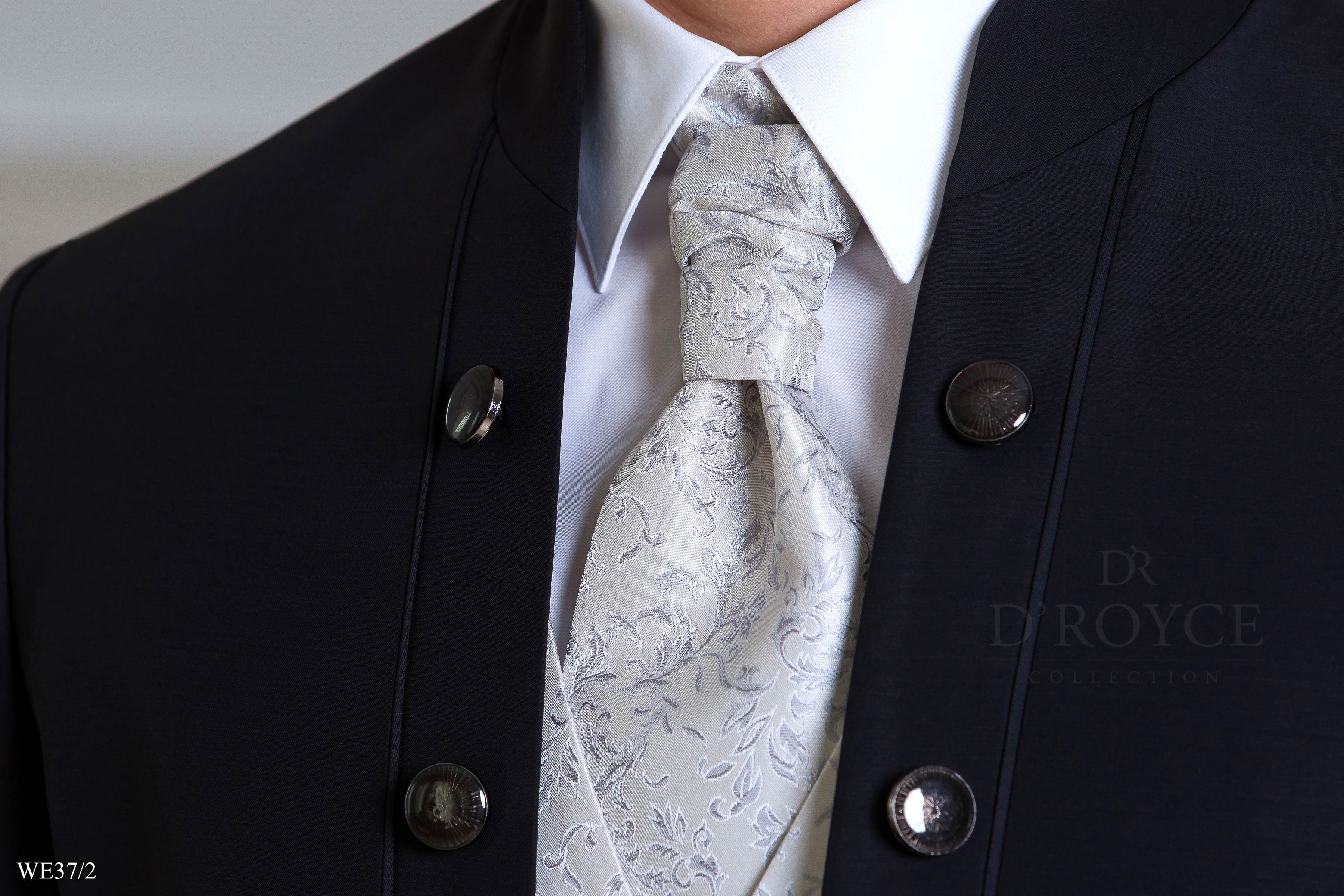 Fekete állógalléros öltöny díszgombolással