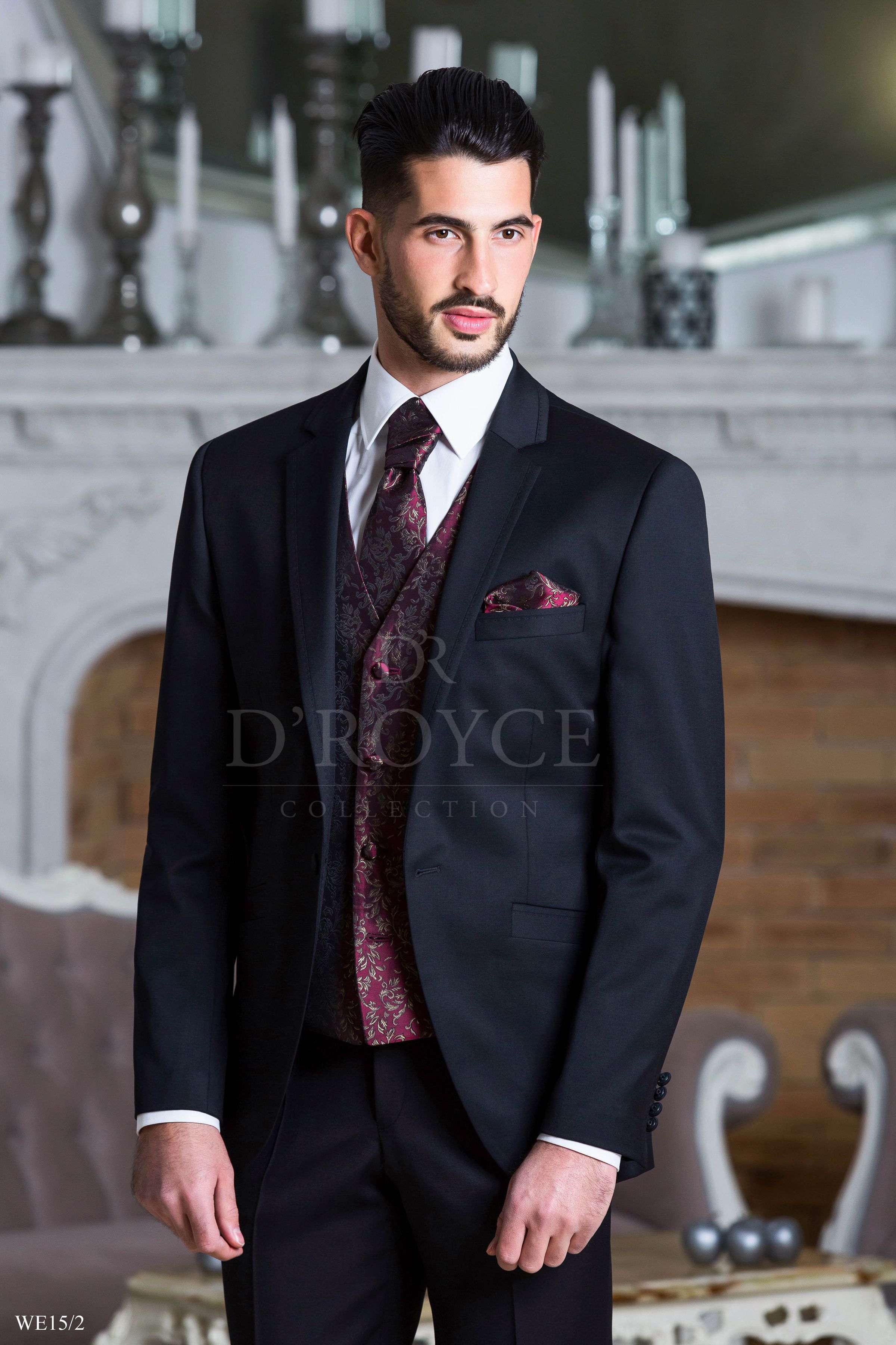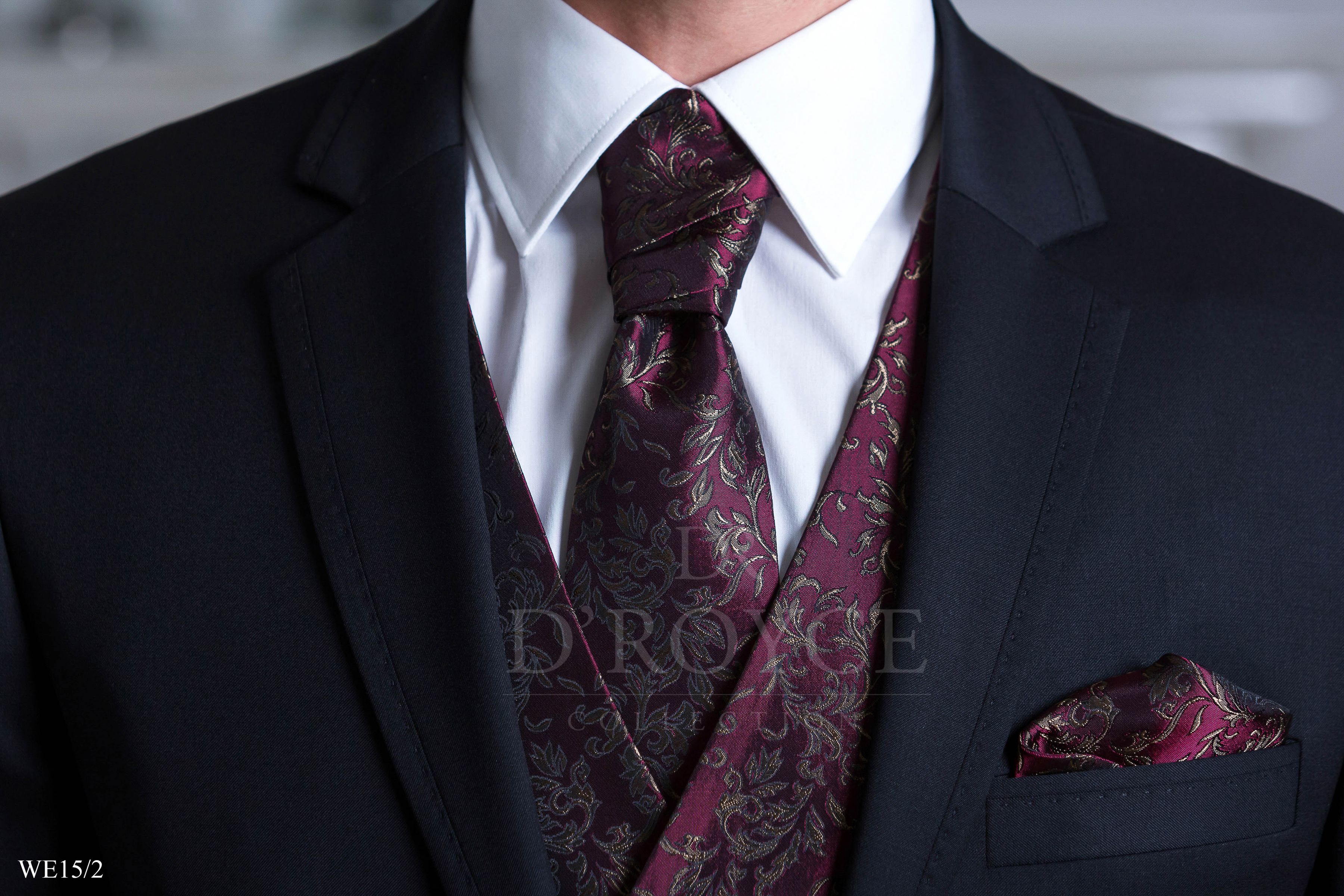 Fekete öltöny bordó szatén mellénnyel
