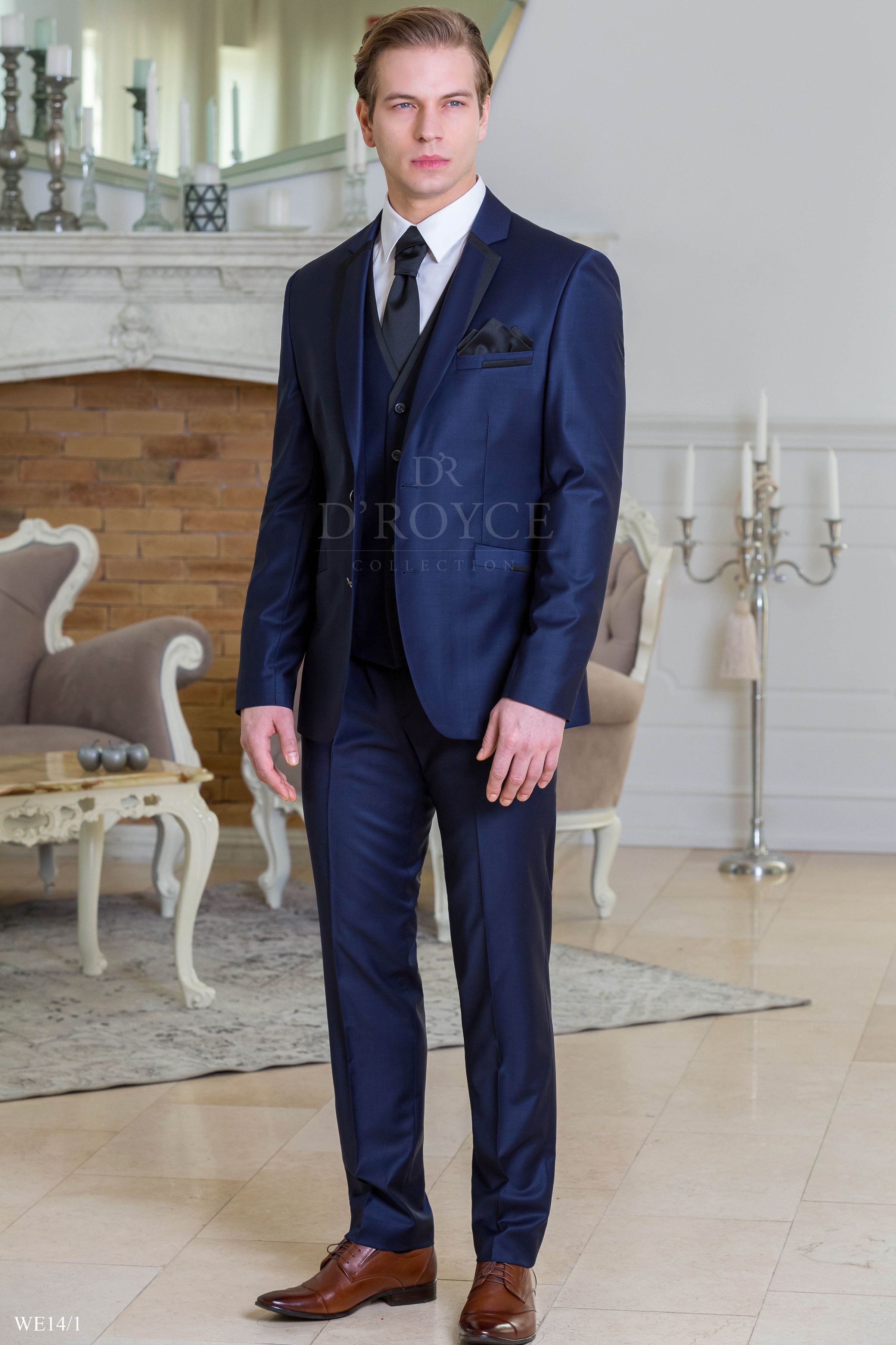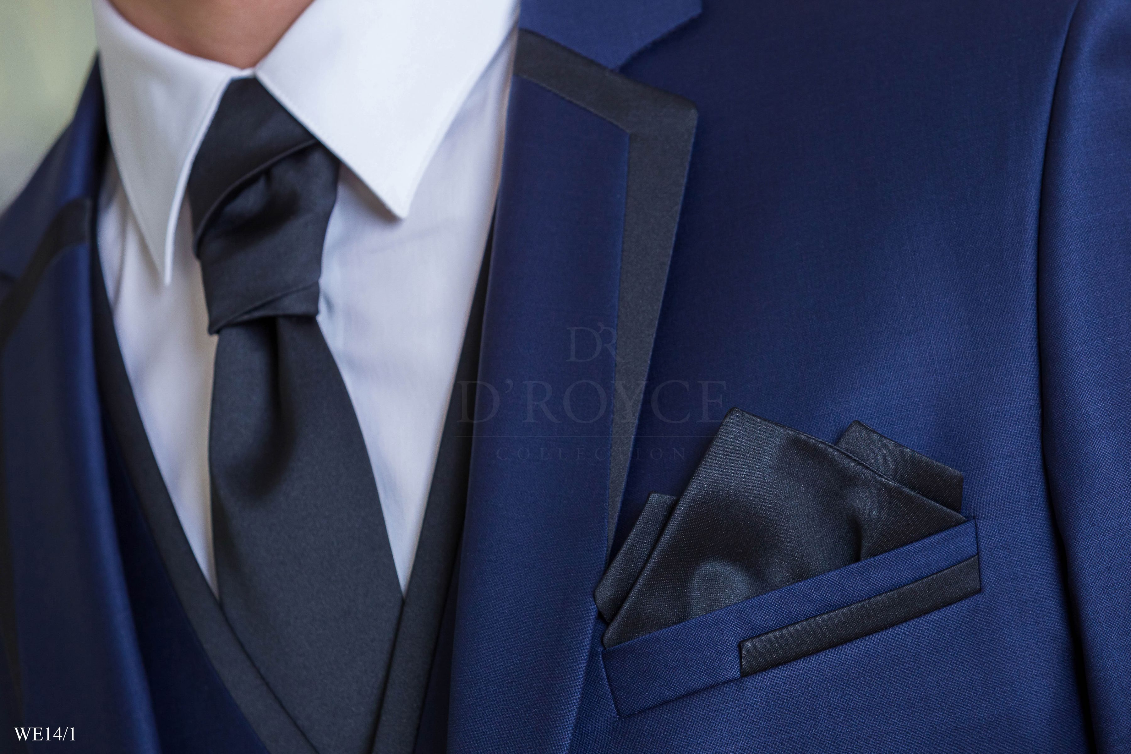 Kék fekete szaténnal szabott
