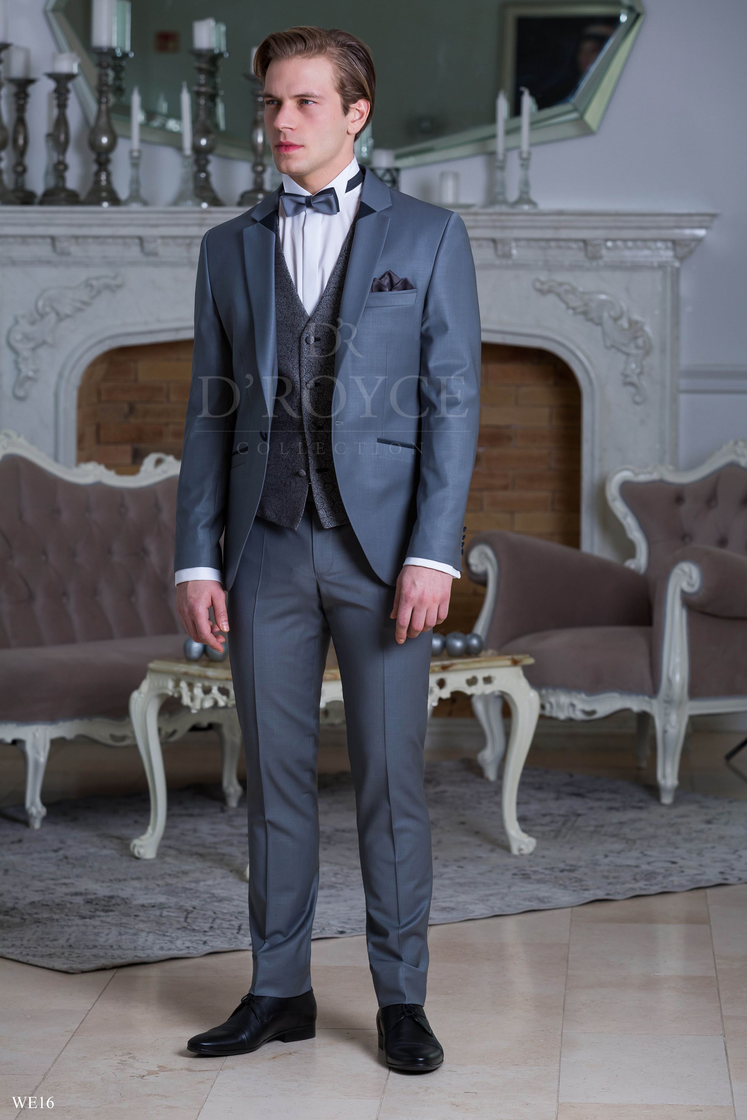 Szürke öltöny ezüst, mintás szatén mellénnyel