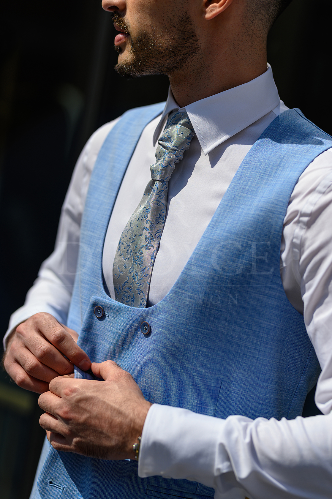 Világos kék öltöny
